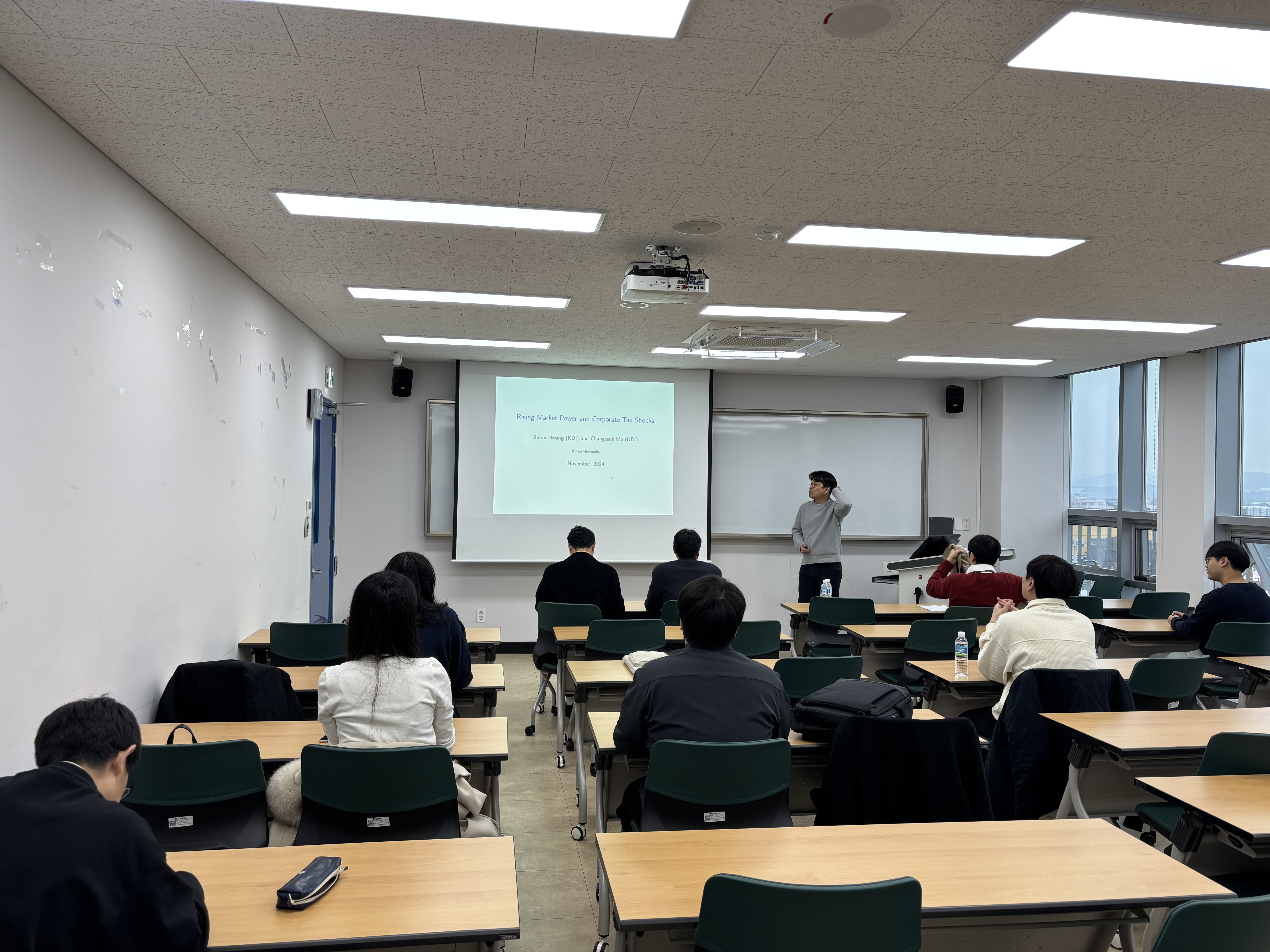 경제정책학전공의 SSK 사업단(Center for Artificial Intelligence and Aging Study (CASS))에서는 한국개발연구원 KDI 황선주 박사님을 모시고 "Rising Market Power and Corporate Tax Shocks "라는 주제의 세미나를 진행하였습니다.